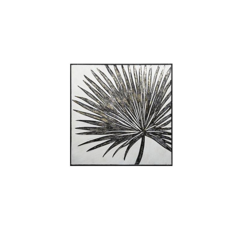 Cuadro madera metal hojas 63x63cm