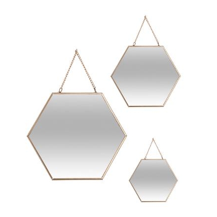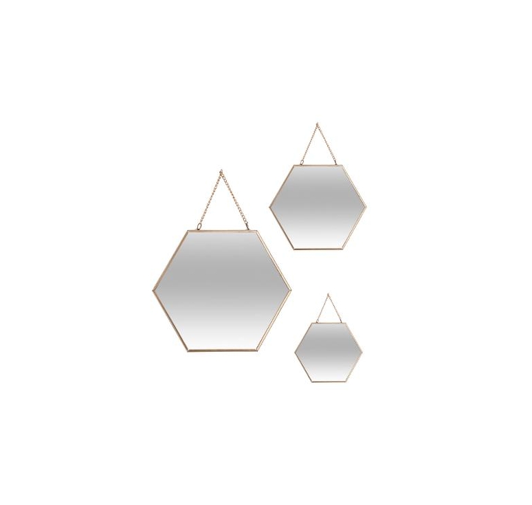 Set 3 espejos hexagonales ORO metal 29-24-20cm