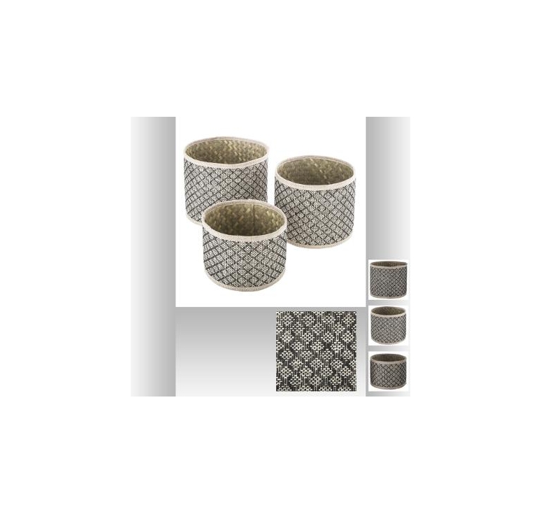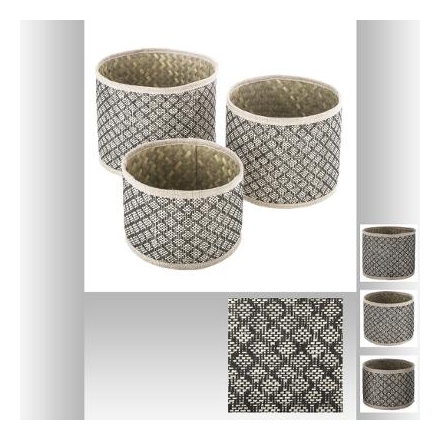 Set 3 macetas mimbre y tela 24cm 22cm 18cm