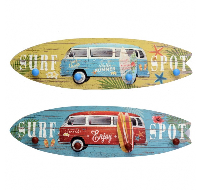 Percha de madera tabla surf 56x15cm.