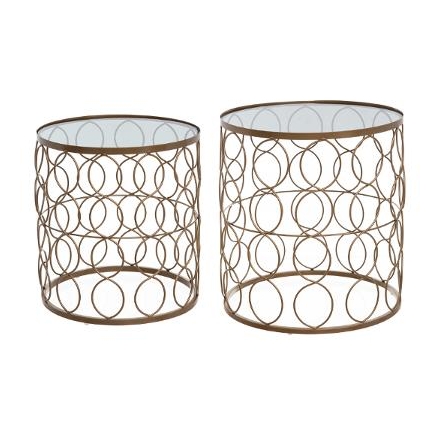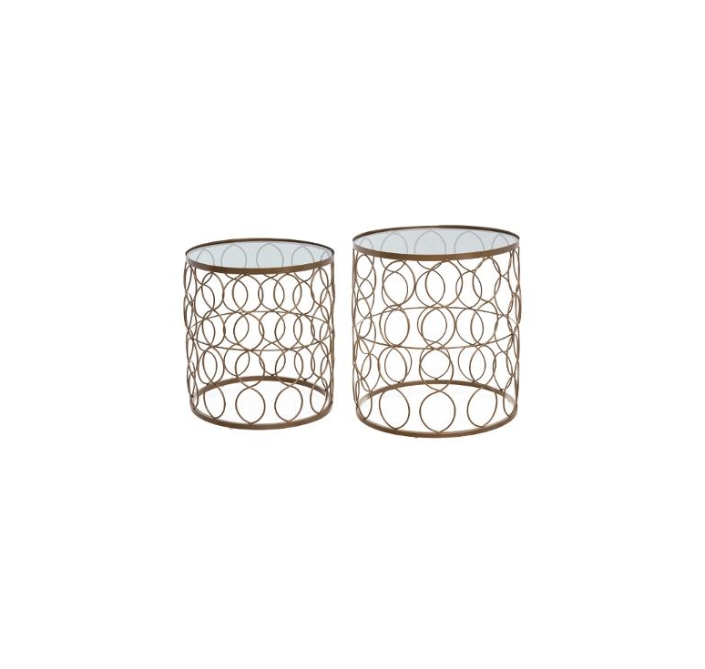 Set 2 mesas metal-cristal doradas 35x37h - 40x44h