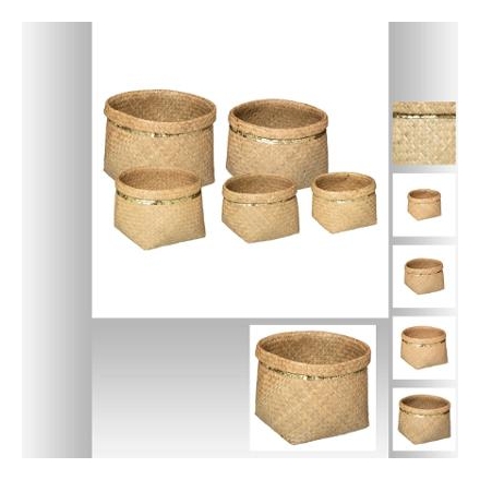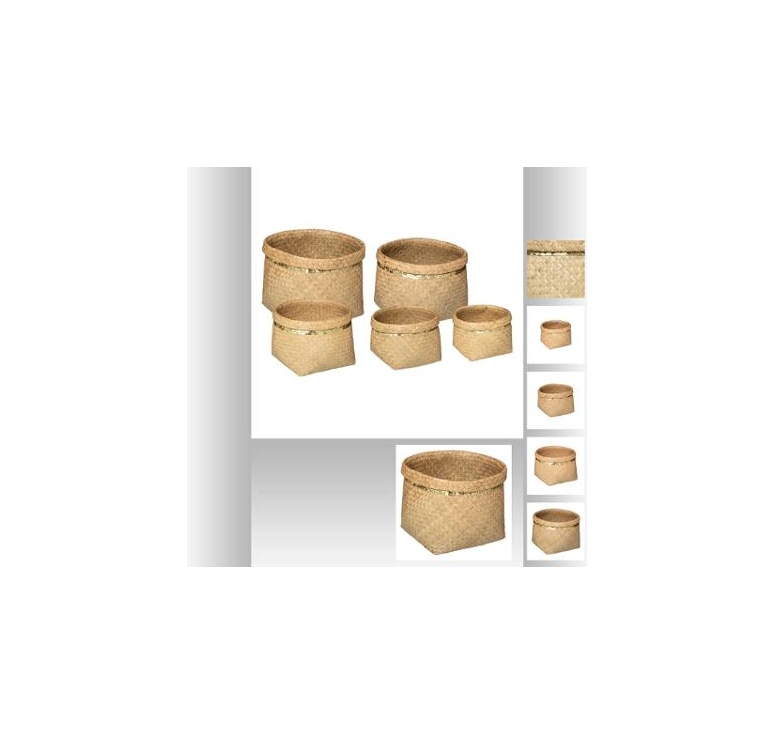 5 cestas en mimbre y lentejuelas 39-36-30-26-23cm