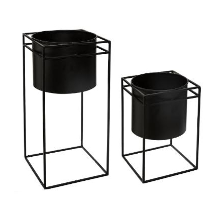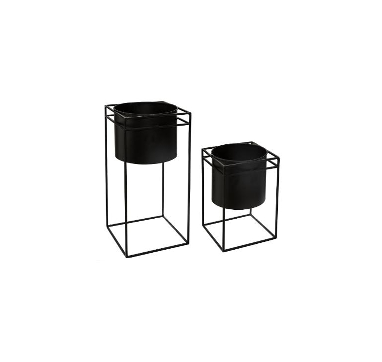 Set 2 macetas con soporte metalico 40x18 y 25x16cm