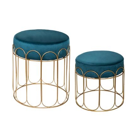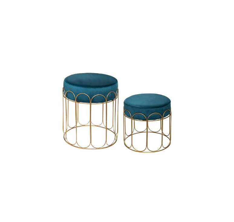 Set 2 taburete metal y terciopelo 47x40cy 33x33cm